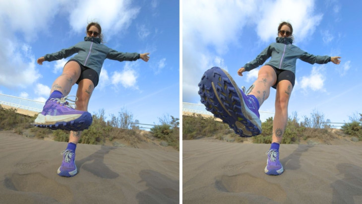 Na wulkanicznej nawierzchni świetnie pracuje podeszwa ASICSGRIP. Trakcja jest przewidywalna zarówno na suchym pyle, jak i na luźnych kamieniach. 4-milimetrowe kołki bieżnika dobrze radzą sobie w mieszanym terenie. Nie miałam jeszcze okazji sprawdzić ich na mokrej skale, ale w suchych, wymagających warunkach czuję się w nich stabilnie. Dużym plusem są też konstrukcja i stabilność. Wyższa boczna część cholewki oraz płytka Rock Protection Plate dają poczucie osadzenia stopy w bucie, co doceniam szczególnie na technicznych zbiegach i trawersach.