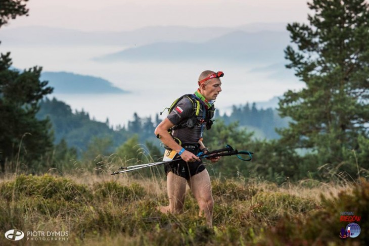 Ponad kilometr biegniemy na początku przy eskorcie policji szosą w kierunku Muszyny. Jest delikatnie w dół, biegnie się szybko. Po ostrym skręcie w prawo pierwszy podbieg jednak brutalnie uświadamia, że nie będzie lekko. Dalej droga przechodzi w szlak i zaczyna się prawdziwe ultrabieganie. Równie nieprzyjemny jest pierwszy zbieg – wąska ścieżka ze sporym spadkiem terenu i luźnymi kamieniami.