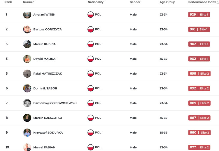 W wyjątkowym gronie ELITY ELIT według ITRA, czyli zawodników z ogólnym rankingiem ponad 900 ITRA mamy obecnie czterech gości: Andrzej Witek, Bartosz Gorczyca, Marcin Kubica i Dawid Malina.