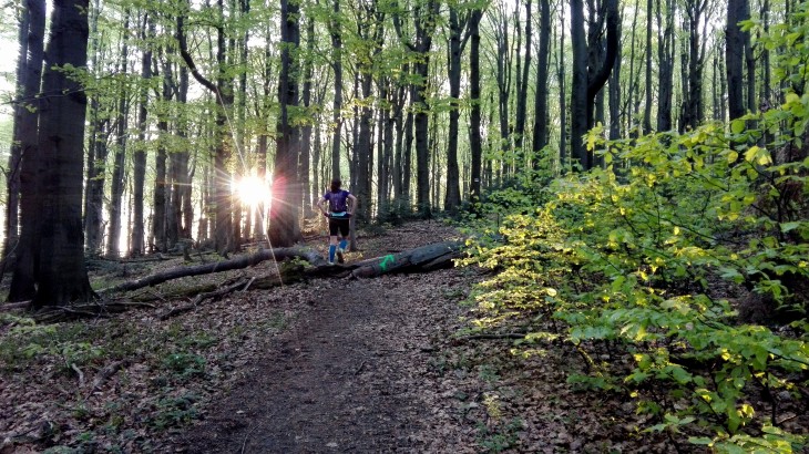 Po mniej więcej półtorej godziny docieramy do Jeziorek Duszatyńskich. Tym razem mgły nie ma. Widoki dodają energii do dalszej walki. Gdzieś pod Chryszczatą witamy pierwsze promienie słońca. Jeszcze jest chłodno, łydka dobrze podaje. Chciałoby się ten stan utrzymać jak najdłużej. Wszyscy się napawają chwilą i strzelają fotki. Umówiliśmy się, że nie biegniemy sami. Biegniemy parami lub większymi, spontanicznymi grupkami, ale nigdy samotnie ‒ bezpieczeństwo przede wszystkim! Dobrze wiemy, że teraz już są telefony komórkowe, ale tam gdzie są potrzebne, zwykle nie ma zasięgu. W tym miejscu trasy grupy tracą już ze sobą kontakt wzrokowy. Nikt się nie ściga. Wszyscy kontemplują upływające kilometry. Zbieramy też po drodze trochę śmieci, butelki, papierzyska, a nawet puszki po konserwie turystycznej. Umówiliśmy się, że nasza wycieczka to nie bicie rekordów i dlatego postanowiliśmy aktywnie wspomóc akcję #runultranotrash. Do Cisnej, przez Żebrak, Jaworne i szereg kolejnych szczytów woreczki na śmieci pęcznieją.