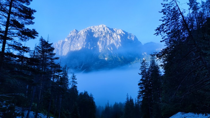 Wspólnie z Wojtkiem oraz kilkoma setkami międzynarodowego ultra bractwa, wchodzimy do parku przyrody Fanes-Senes-Braies. Po przekroczeniu warstwy mgły, naszym oczom ukazują się postrzępione szczyty i zbocza, które mogłyby z łatwością stworzyć wrażenie praktycznie nieprzebytego górskiego regionu. Jednak wijąca się kolorowa, wstążka ultrasów dowodzi, że park można pokonać biegiem i marszem. Zaczyna się nasze długie i żmudne podejście na pierwszą przełęcz, na wysokość 2286m i dalej zbieg do pierwszego punku żywieniowego na 17km w Malaga Foresta. Podczas zbiegu rozstaję się z Wojtkiem, który jako z natury bardziej kulturalny człowiek, nie przepycha się pomiędzy ultrasami i cierpliwie drepcze w sznurku schodzących. Ja niestety nie moge schodzić, każdy ma swoje tempo oraz skoro przyjechaliśmy tu biegać to biegnę, a w dół podobno łatwiej. Coś mi się z tym punktem nie zgadza względem dystansu, bo zegarek pokazuje mi po dotarciu jedynie 15,7km. Zbytnio się tym jednak nie przejmuję, zapycham usta serem, salami i bananem i biegnę dalej. Uzupełniam też wodę, bo zaczyna się powolutku robić ciepło. Niedługo za pierwszym punktem trasa wybiega na jezioro Braies. Krystalicznie czystą, lazurową taflę wody, otoczoną piaskową plażą i stromymi na ponad 3000m szczytami. W lazurowym jeziorku stoi krowa, scenka dość surrealistyczna, więc szczypię się, czy nie mam przypadkiem jakiś halunów. Jednak krowa jest tam nadal, potrząsa głową, dzwoni alpejskim dzwonkiem i tępo spogląda na robiących jej zdjęcia ludzi. Pewnie dla niej widok kolorowych wariatów smigających wzdłuż brzegu jest równie surrealistyczny. No cóż punkt widzenia zależy od punktu siedzenia, a mówiąc bardziej precyzyjnie, stania.