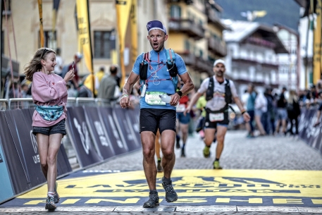 Na finiszu wbiegam do miasteczka. Na rogatkach jest prywatny punkt żywieniowy organizowany przez lokalnych, włoskich kibiców, głównie dzieci. Wyjątkowo ujmujące miejsce, dzieciaki serwują colę, jest prysznic dla ochłody i wiwatujący kibice. Jak 4 lata temu biegłem LUT, też był tu punkt. Zatrzymuję się, przybijam piątki z dzieciakami, piję colę, śmiejemy się, krzyczymy “forza, forza”. Jest super, do mety mam tylko kawałek. Na ostatniej, deptakowej prostej dołącza do mnie moja 12 letnia córka, Martyna. Ona chce biec, mówi "tata to finisz, dajesz". A ja chcę ten moment zapamiętać na długo, więc się nie spieszę. Truchtamy do mety, ktoś po polsku krzyczy “gazu”. Ja gaz dociskałem przez ostatnie 79 km i teraz mam chwilę na endorfinowy haj. Choć wolno, to jednak przesuwamy się do przodu i przekraczamy metę, uśmiechy, uściski z Martyną. Koniec, zatrzymuję zegarek z wynikiem 14h 03min, bieg zaliczony zgodnie z planem. Odbieram super pamiątkową kamizelkę od La Sportiva. Nie dają pamiątkowego medalu, smuteczek. Godzinę później do finiszerów dołącza Maciek, a po kolejnej półtorej godziny metę przekracza Wojtek, tracąc swoje 80 km dziewictwo. Wszyscy zadowoleni, zmęczeni i głodni. Wieczór kończymy wspólnym makaronem z fantastycznymi kotlecikami w sosie pomidorowym od małżonki Maćka, Agaty.