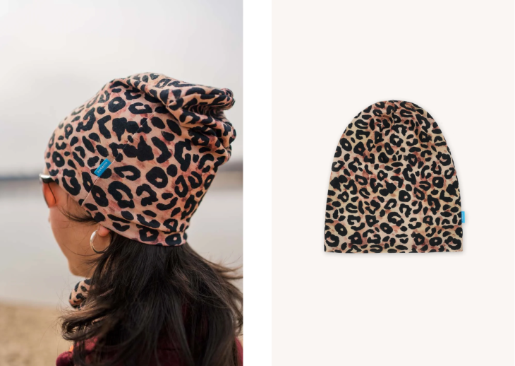 Lekka czapka w 100% z wełny merino o gramaturze 135 g/m², w autorski wzór „panterka”. Miękka, elastyczna dzianina nie drażni skóry i idealnie dopasowuje się do kształtu głowy. Zapewnia odpowiednią termoregulację i sprawdzi się jako bazowa warstwa na treningi w każdych warunkach pogodowych.