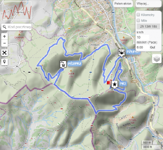 f) mapę z zaznaczoną trasą,