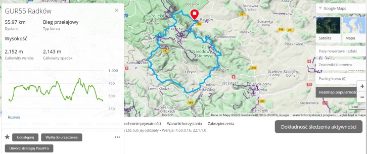 Na wyposażenie obowiązkowe na trasie 55 km składa się: