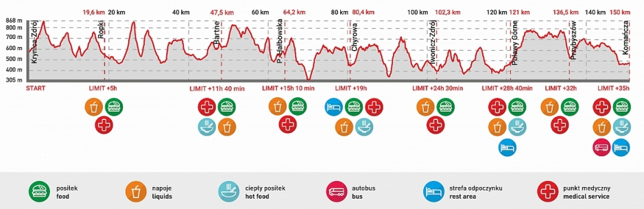 - bufety na trasie wg rozpiski zamieszczonej w komunikacie technicznym