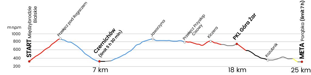 Dla dystansu 45 km. Ze względu na limit czasu 11:00 i wcześnie zapadający o tej porze