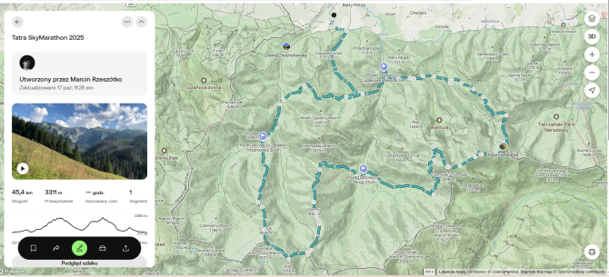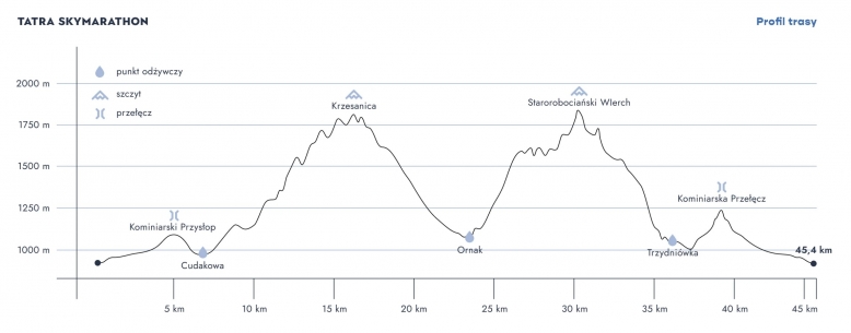 min. 0,5 litra płynów na starcie – w plecaku, bukłaku, bidonie/bidonach (zaleca się uzupełnienie płynów na każdym punkcie odżywczym w ilości nie mniejszej niż 1 litr),