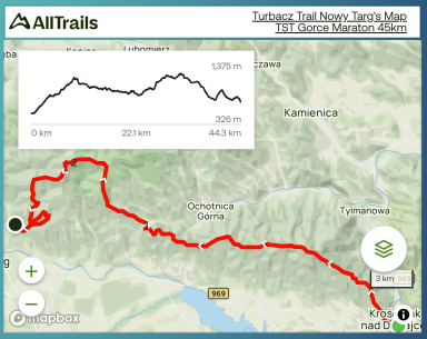 - wgrany aktualny track lub mapa dystansu, na którym się startuje – aktualny track do pobrania z regulaminu lub strony www organizatora – www.turbacztrail.pl