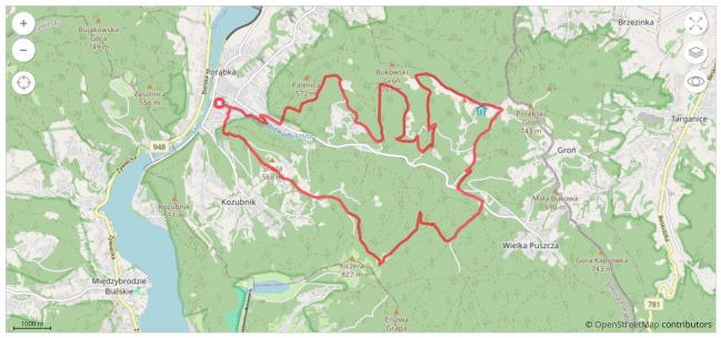 bukłak lub bidon/bidony o łącznej pojemności co najmniej 1 litra oraz zapas wody lub napoju minimum 1 litr (sprawdzany przy wyjściu z punktu odżywczego),