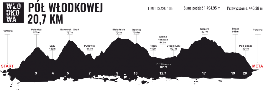 zapas jedzenia wystarczający do następnego punktu żywieniowego – ok 400 Kcal po każdym wyjściu z PK,