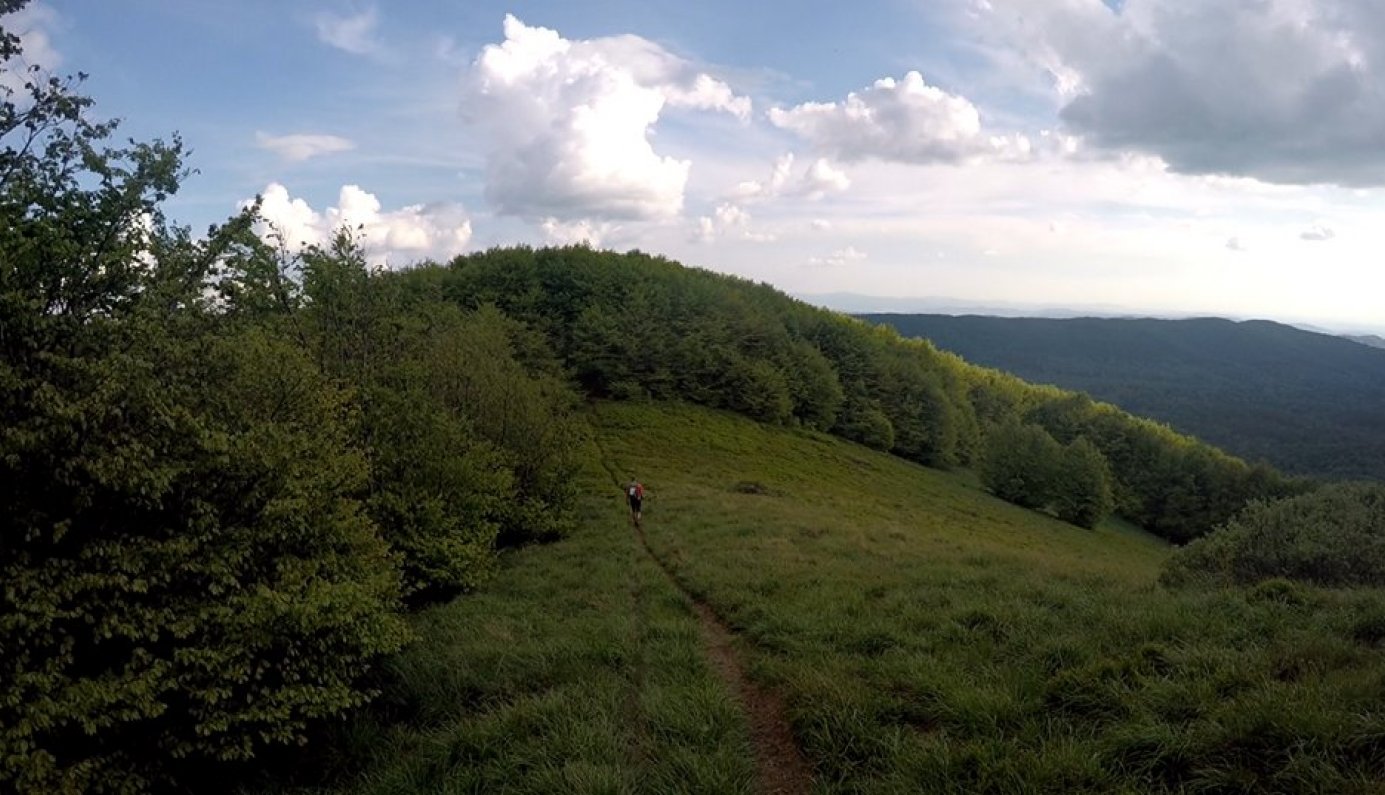 Można coś poprzekąszać i uzupełniać płyny. Słoneczko grzeje, dookoła zielono. Prawdziwa biegowa sielanka wśród bieszczadzkich szczytów.