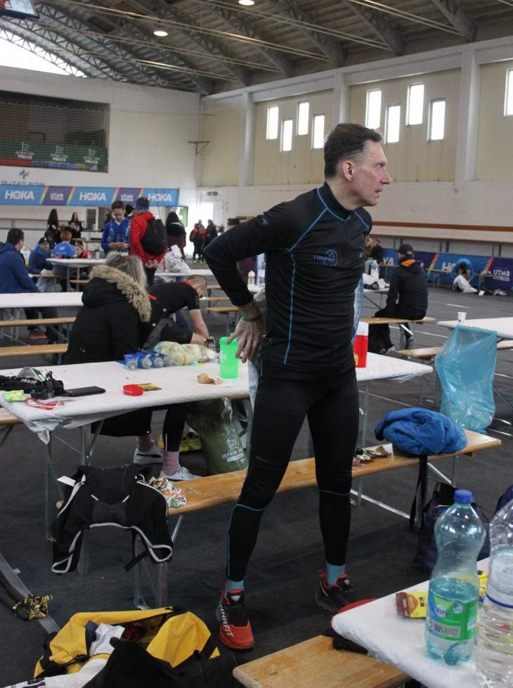 Większość zejść jest wymagająca. Czasami jedynym sposobem kontroli jest skakanie od drzewka do drzewka i kurczowe chwytanie się gałęzi. Godziny mijają i dociera powoli do mnie, że powoli, acz nieuchronnie, zaczyna robić się widno. Noc powoli odchodzi. Jednak do przepaku na 100km. w miejscowości Buzet jeszcze daleko. Spinam się i próbuje wykrzesać z siebie więcej sił. Podejście, zejście i tak cały czas. Szersza ścieżka, węższa dróżka. Więcej błota, mniej błota. Ostatni zbieg przed przepakiem to zakosy po gołoborzach, następnie wypłaszczenie terenu i wbiegnięcie na asfalt prowadzający do hali sportowej, w której znajduje się przepak. Na miejscu spotykam swoich, którzy już czekają na mnie i moje pojękiwania. Naładowany jeszcze końcowym odcinkiem biegu wpadam na przepak i trochę czasu mija zanim zaczynam ogarniać: miejsca, ciuchy na przebranie, jedzenie, picie, buty. Potrzebuję trochę czasu. Potrzebuję jedzenia, picia i… wszystko to dostaję. Niektórzy w życiu, to mają szczęście!