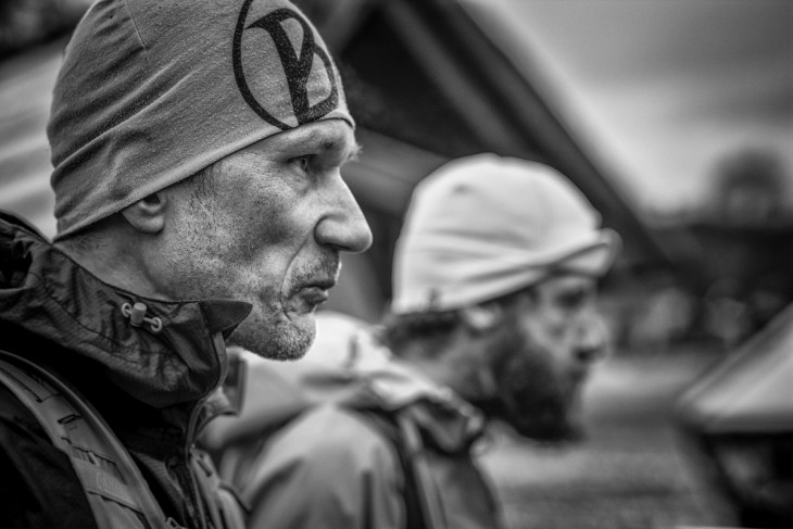 W pewnym momencie wybiegliśmy z lasu i trafiliśmy na wylaną rzekę. Pokonaliśmy ją szybkim wieloskokiem, co było doświadczeniem dość ekstremalnym, bo woda była lodowata i zmoczyła nam nogi do kolan. Na szczęście spodnie szybko wyschły, a do butów wróciło ciepło. Pracujące ciało biegacza to świetny grzejnik! Wkrótce dotarliśmy do pierwszego punktu, gdzie spotkało nas bardzo miłe przywitanie. Jakaś dziewczyna się do nas uśmiecha i mówi, że tak się niby nie spieszyliśmy na początku, a jesteśmy w połowie stawki. Ktoś podał mi herbatę i zapytał dwa razy, czy mi w czymś nie pomóc. Klasa! Taka troska nie zdarza się często na zawodach. Zbiegliśmy z górki i polecieliśmy dalej. Humory dopisywały, trasa wiodła po tej niby-wydmie, wąskimi ścieżynkami pomiędzy rachitycznymi choineczkami jak z lasu hobbitów. Biegliśmy, gadaliśmy i co jakiś czas kogoś wyprzedzaliśmy. Mógłbym tak z Jankiem biec na koniec świata.